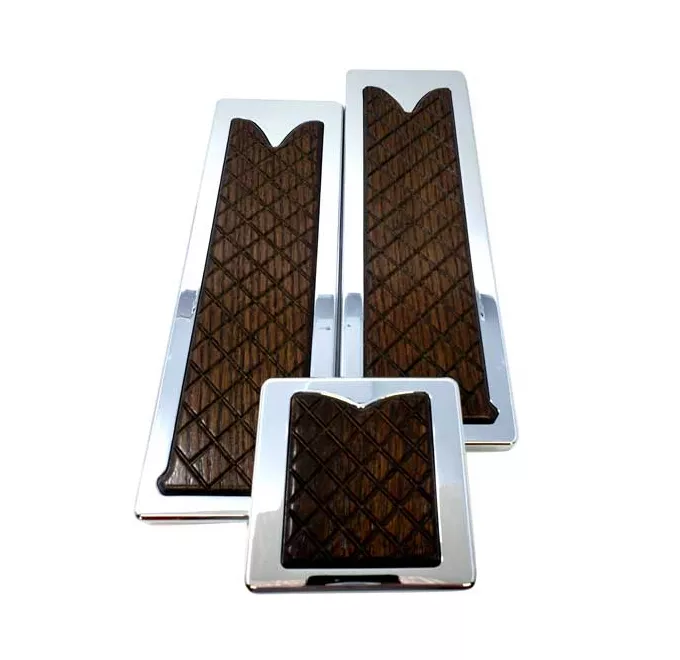 The Peterbilt 1985 And Newer Red Oak Wooden Square Pedal Set is a practical and stylish addition to your Peterbilt truck. Made with chrome plated billet aluminum and featuring a red oak wooden inlay, this set of 3 pedals adds a touch of elegance to your vehicle’s interior. Designed to fit most Peterbilt models from 1985 and newer, these pedals are not only visually appealing but also provide a comfortable and secure grip. Upgrade your truck’s aesthetics and enhance your driving experience with this high-quality pedal set.